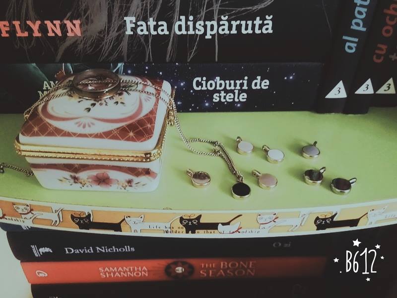 Aceasta este o micuță cuie pentru bijuterii, stătea aiurea prin casă și m-am gândit că i-ar sta bine în biblioteca mea. Acum am în ea acest lănțișor drăguț care are mai multe medalioane, în diferite culori și un inel care își schimbă culoarea în funcție de temperatura corpului ^^